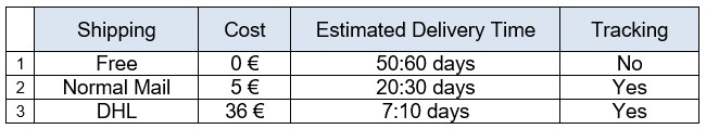 Note: Due to the current COVID-19 pandemic, our couriers may experience delays in shipping and updating of information due to the restriction of shipping lines.