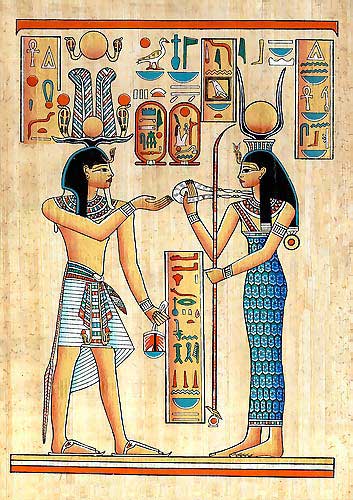 the ancient Egyptian Goddess Hathor while offering her necklace to the pharaoh, Goddess Hathor papyrus Hathor-Goddess Papyrus Papyrus Painting No: PAP05Size: 30 x 40 Cm Price: 9.90 Euro |